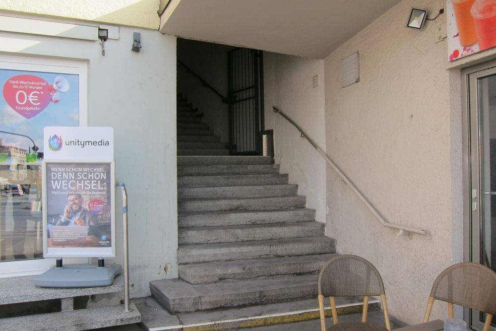 Nachtrag April 2018: Es gibt jetzt einen gut sichtbaren Hinweis für die Treppe.
