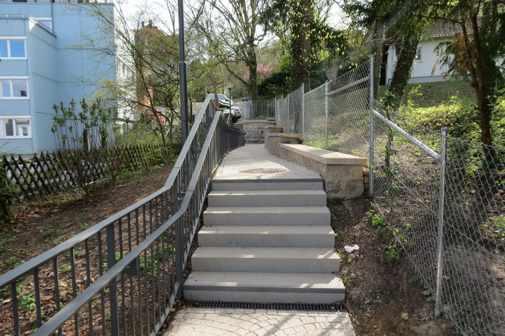 Ein Mitglied des Tübinger Gemeinderates hat so lange versucht, eine aus Sicherheitsgründen geschlossene Treppe vom Österberg hinunter zur Neckarbrücke zu erneuern, bis sie schließlich doch gebaut wurde. Die Treppe besteht aus einem überdachten Aufgang, einer Art Treppenhaus, das bei der Sanierung im wesentlichen nur etwas verschönert wurde. Und einem freiliegenden Übergang oberhalb einer viel befahrenen Straße, der Mühlstraße, der komplett neu gemacht wurde und der einen unerwartet großen Aufwand erforderte. Sie wurde am 2. April 2017 vom Oberbürgermeister feierlich eröffnet.